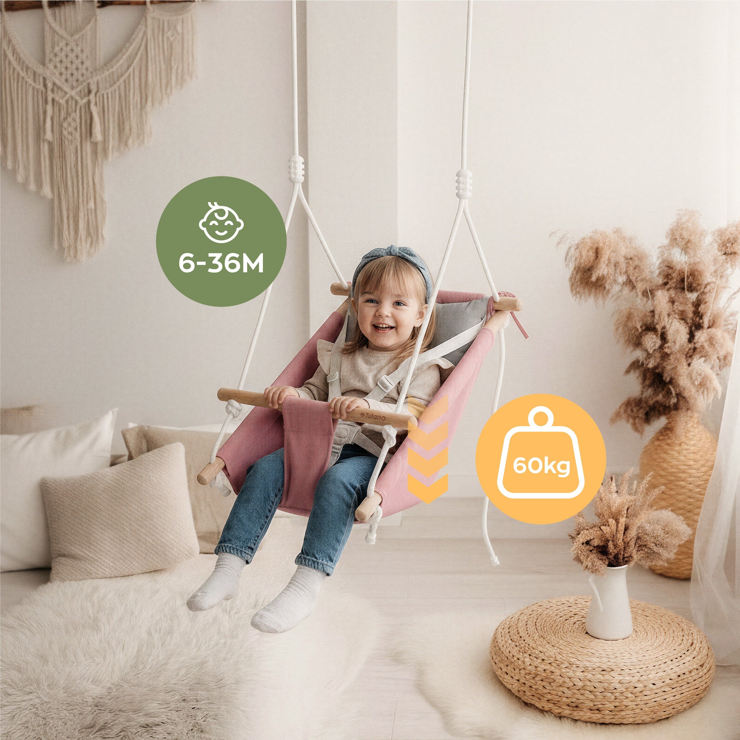 TULANO Hop 40 Rosa-Graue Kinderschaukel