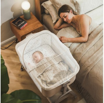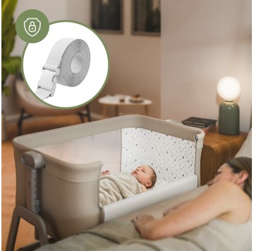 Das Bettchen kann sicher an einem Erwachsenenbett befestigt werden - kompatibel mit den meisten auf dem Markt erhältlichen Betten.