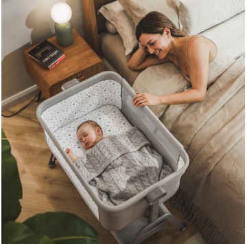 Das Bettchen kann sicher an einem Erwachsenenbett befestigt werden - kompatibel mit den meisten auf dem Markt erhältlichen Betten.